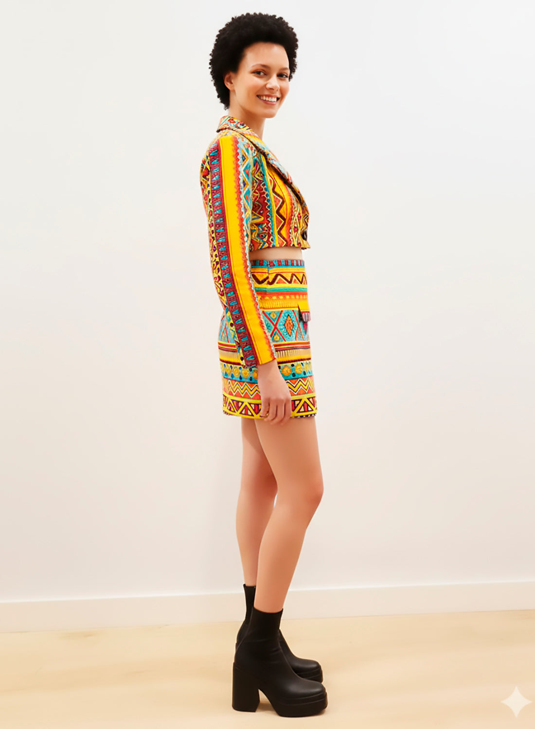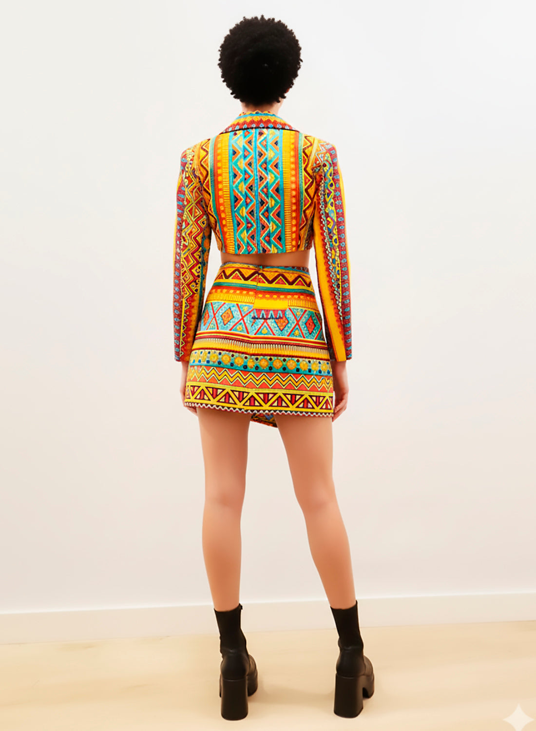 Este conjunto de falda y americana crop top está hecho de tela wax 100% algodón. Se puede usar como un...