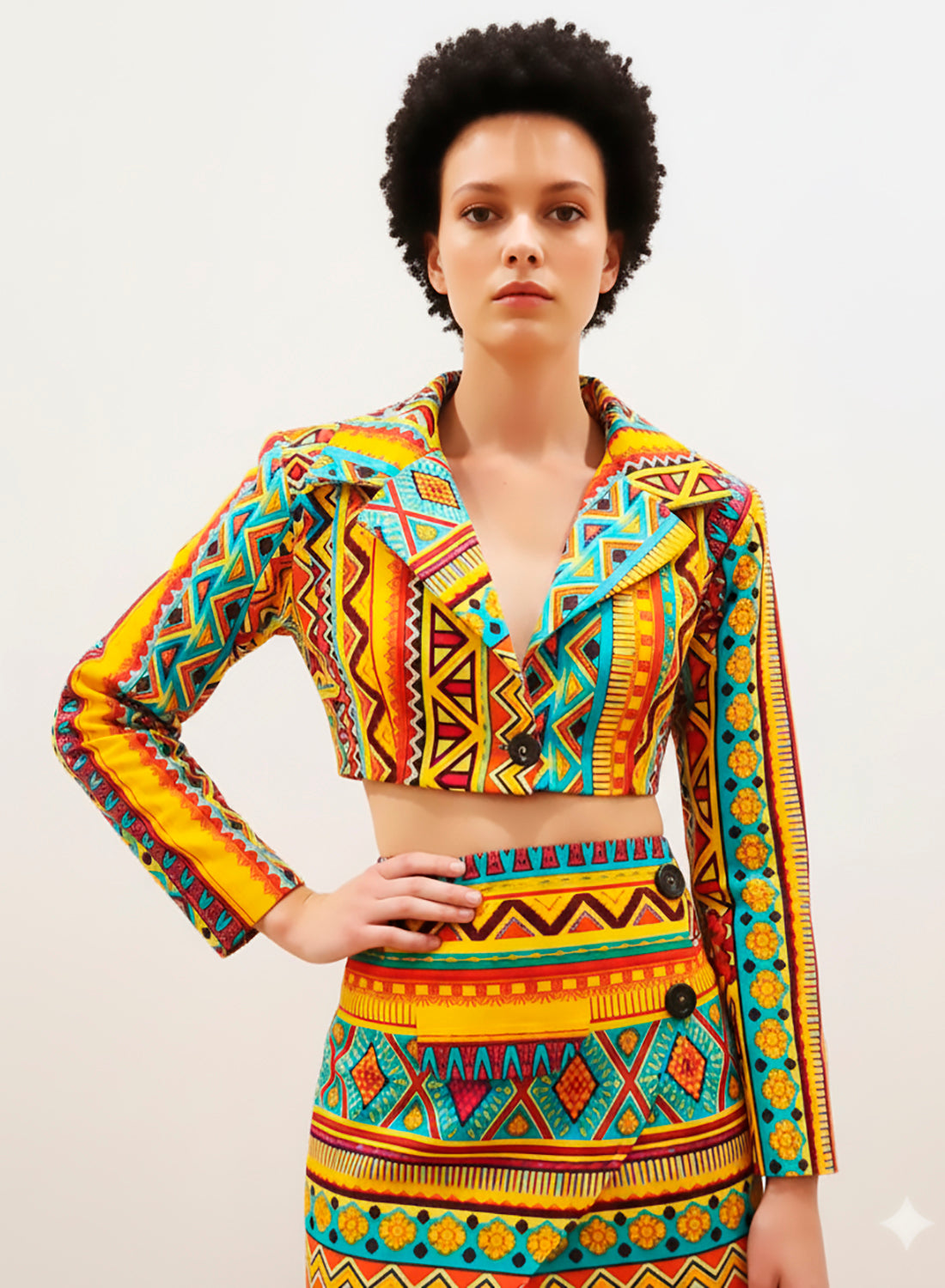 Este croptop de algodón con turbante es perfecto para combinar con tus tejanos o falda. Sus vistosos colores simbolizan la belleza...
